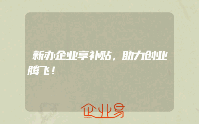 - 新办企业享补贴,助力创业腾飞!