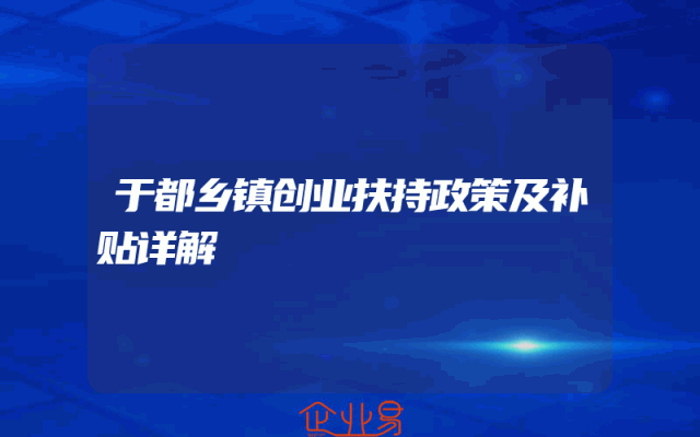 - 于都乡镇创业扶持政策及补贴详解