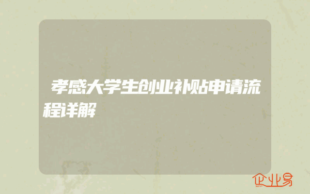 - 孝感大学生创业补贴申请流程详解一、创业补贴政策概述为了鼓励大学生创业,孝感市政府出台了一系列创业补贴政策,为大学生创业提供资金支持。这些补贴包括创业启动资金、场地租金补贴、税收减免等,旨在减轻大学生创业的初期压力,激发他们的创新活力。二、申