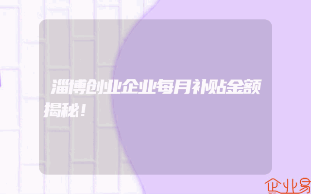 - 淄博创业企业每月补贴金额揭秘!政策概览淄博作为经济发展的重要城市,为了鼓励创业企业落地生根,推出了一系列补贴政策。这些政策旨在减轻创业企业的经济负担,促进其健康、快速地发展。补贴金额揭秘针对在淄博创业的企业,每月的补贴金额因企业类型