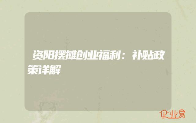 - 资阳摆摊创业福利:补贴政策详解