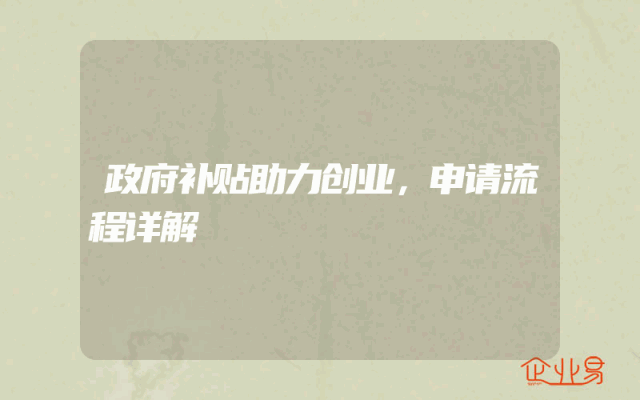 - 政府补贴助力创业:申请流程详解一、政府补贴对创业者的支持与重要性随着社会的不断发展,政府对创业者的支持力度也在逐年增强。其中,政府补贴作为一种重要的财政支持手段,对创业者而言具有至关重要的意义。它不仅能够为创业者提供资金支持,解决初创企业面