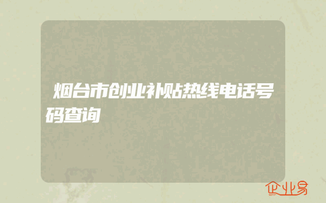 - 烟台市创业补贴热线电话号码查询及相关解读一、烟台市创业补贴政策概述烟台作为山东省的重要城市,为鼓励创新创业,推出了一系列的创业补贴政策。这些政策旨在支持创业者实现自己的梦想,推动经济发展。二、创业补贴热线电话号码查询对于想要了解创业补贴政策