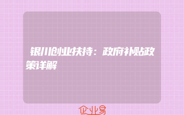 - 银川创业扶持:政府补贴政策详解