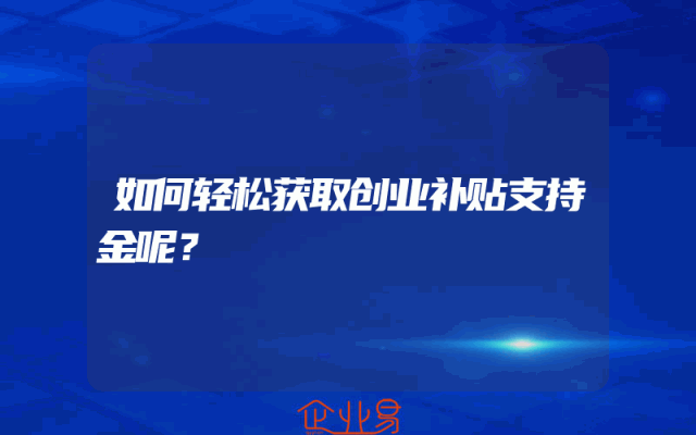 - 如何轻松获取创业补贴支持金呢?