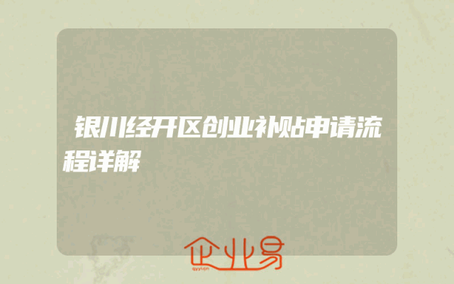 - 银川经开区创业补贴申请流程详解
