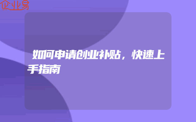 - 如何申请创业补贴,快速上手指南