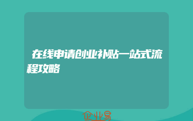 - 在线申请创业补贴一站式流程攻略