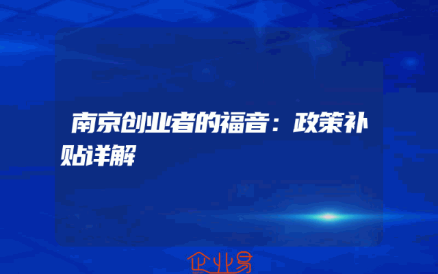 - 南京创业者的福音:政策补贴详解南京市的创业政策环境南京,一座历史与现代交织的城市,近年来为了鼓励创新创业,大力推行各类政策补贴,为创业者提供了强有力的支持。在这座城市中,创业者们迎来了前所未有的发展机遇。政策补贴的概述南京市政府出台了一系列