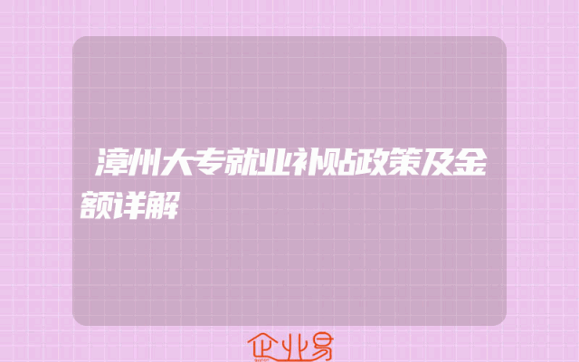 - 漳州大专就业补贴政策及金额详解一、漳州大专就业补贴政策概述为了促进地方经济发展,鼓励大专毕业生在漳州地区就业,漳州市政府推出了一系列大专就业补贴政策。这些政策旨在支持年轻人的职业发展,帮助他们更好地适应和融入社会,并为地方企业输送新鲜血液。