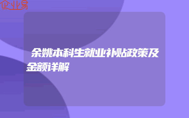 - 余姚本科生就业补贴政策及金额详解一、引言随着社会的快速发展,人才的引进和培养已成为各地政府关注的焦点。余姚市政府为了鼓励本地高校毕业生就业,推出了一系列的就业补贴政策。本文将对余姚市针对本科生的就业补贴政策及金额进行详细解读,帮助大家更好地