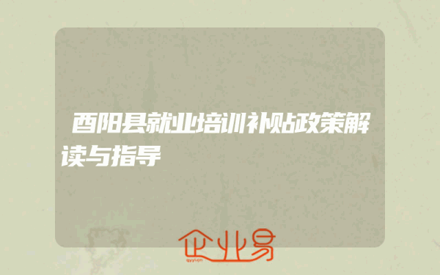 - 酉阳县就业培训补贴政策解读与指导