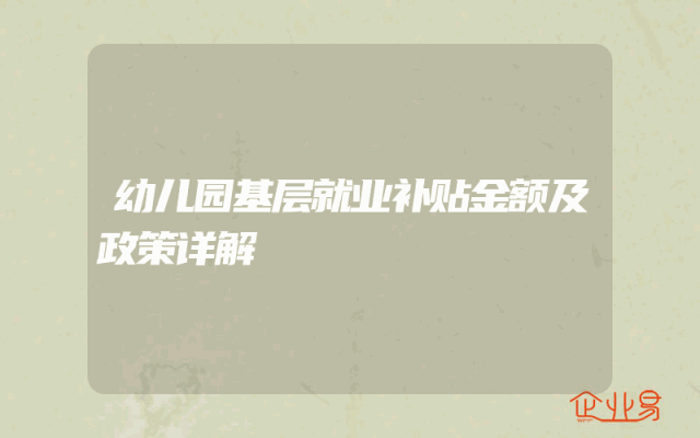 - 幼儿园基层就业补贴金额及政策详解