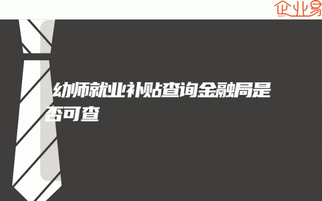 - 幼师就业补贴查询金融局是否可查