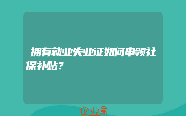- 拥有就业失业证如何申领社保补贴?