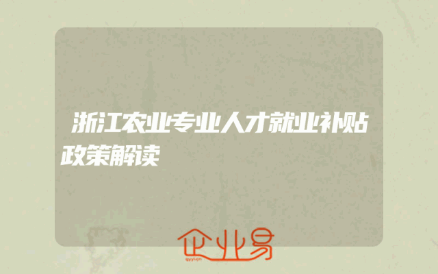 - 浙江农业专业人才就业补贴政策解读