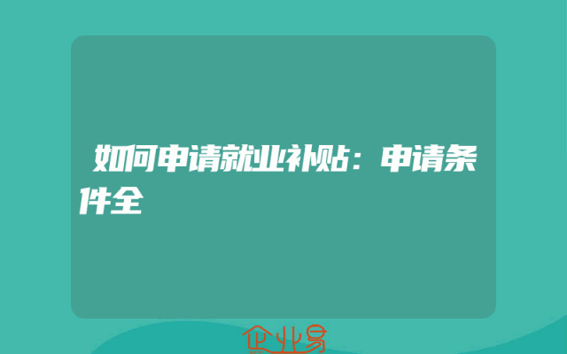 - 如何申请就业补贴:申请条件全