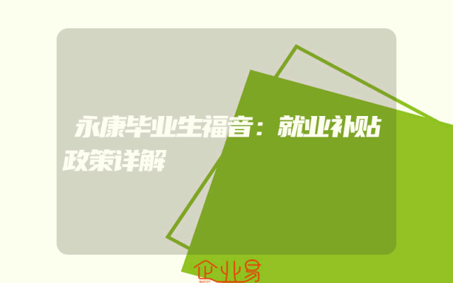 - 永康毕业生福音:就业补贴政策详解