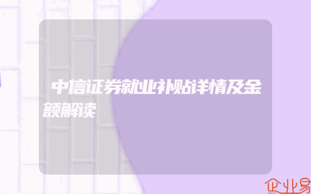 - 中信证券就业补贴详情及金额解读