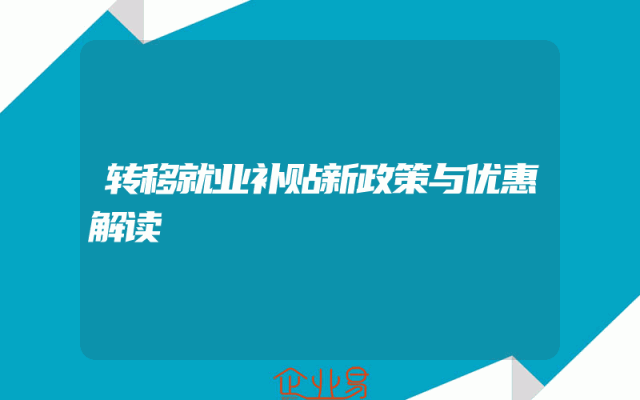 - 转移就业补贴新政策与优惠解读