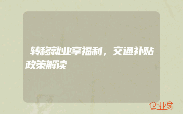 - 转移就业享福利,交通补贴政策解读