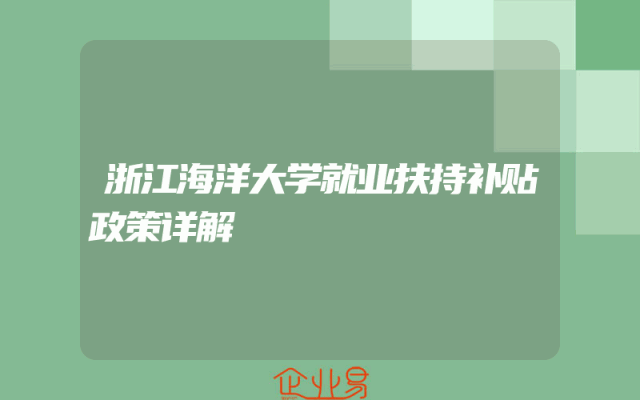 - 浙江海洋大学就业扶持补贴政策详解