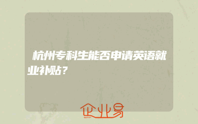 - 杭州专科生能否申请英语就业补贴?