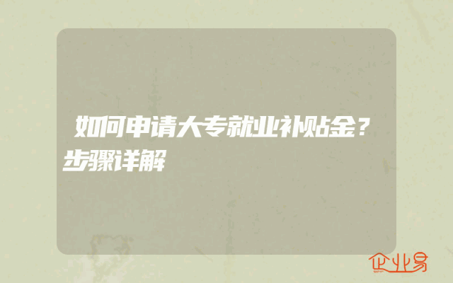 - 如何申请大专就业补贴金?步骤详解了解政策与补贴种类首先,要成功申请大专就业补贴金,我们需要对相关政策有深入的了解。政府部门、教育机构以及社会上的各类基金会都可能提供此类补贴,其目的在于鼓励大专毕业生积极就业,减轻就业压力。常见的补贴种类包括