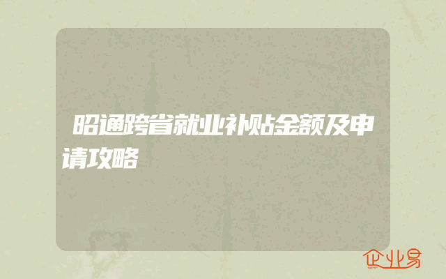 - 昭通跨省就业补贴金额及申请攻略