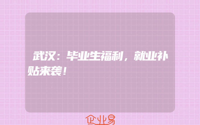 - 武汉:毕业生福利,就业补贴来袭!