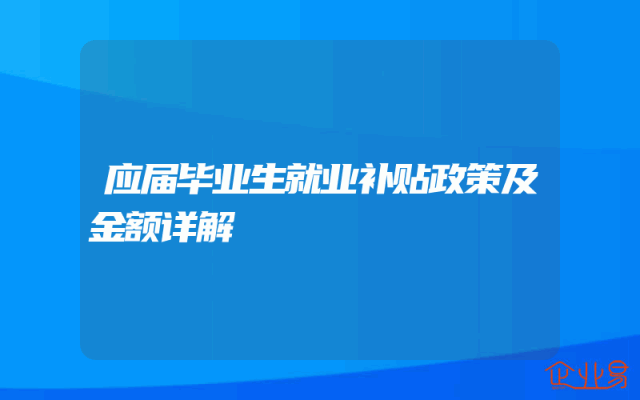- 应届毕业生就业补贴政策及金额详解