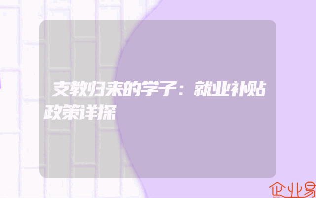 - 支教归来的学子:就业补贴政策详探