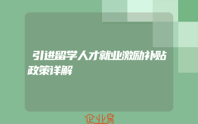 - 留学人才就业激励补贴政策详解一、政策背景与意义随着全球化的深入发展,留学人才在我国经济社会发展中的作用日益凸显。为吸引更多留学人才回国就业,推动我国科技创新和产业升级,政府推出了留学人才就业激励补贴政策。这一政策从多个角度对留学人才的引进和