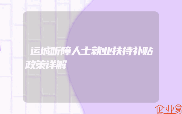 - 运城听障人士就业扶持补贴政策详解一、政策背景与目标随着社会的进步与发展,对特殊群体的关注与扶持日益成为社会的共识。运城地区针对听障人士的就业扶持补贴政策,旨在通过一系列措施,促进听障人士的平等就业,提升他们的生活水平。此政策不仅关注个体的需