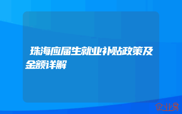 - 珠海应届生就业补贴政策及金额详解