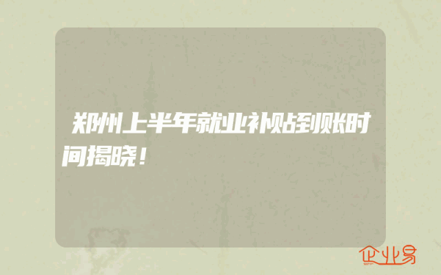 - 郑州上半年就业补贴到账时间揭晓!
