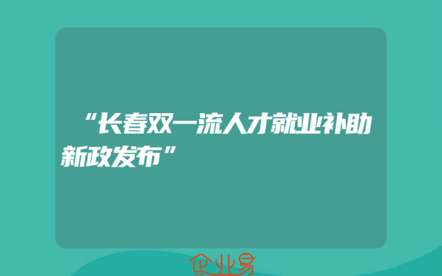 - “长春双一流人才就业补助新政发布”