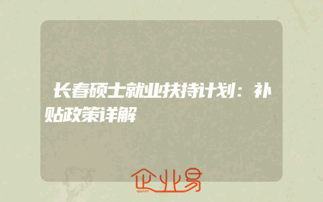 - 长春硕士就业扶持计划:补贴政策详解