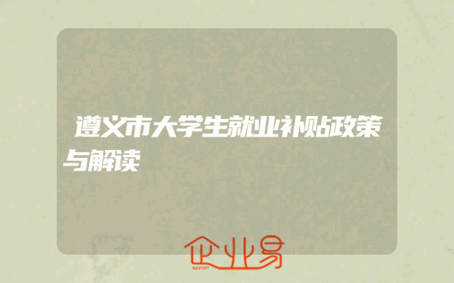 - 遵义市大学生就业补贴政策与解读