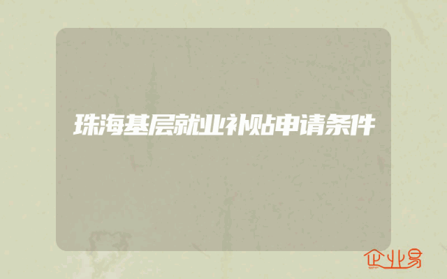 - 珠海基层就业补贴申请条件