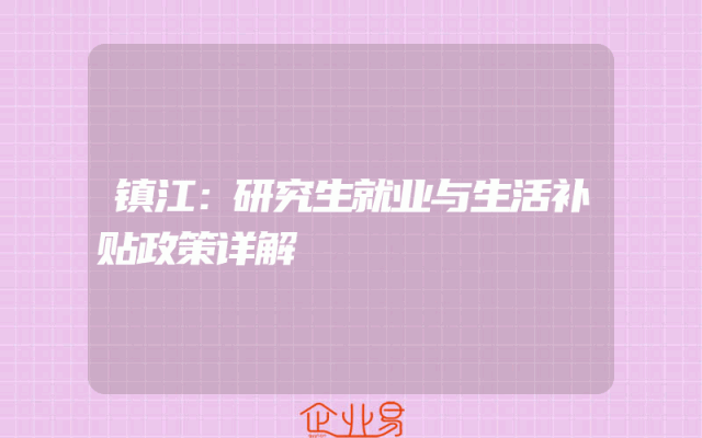 - 镇江:研究生就业与生活补贴政策详解