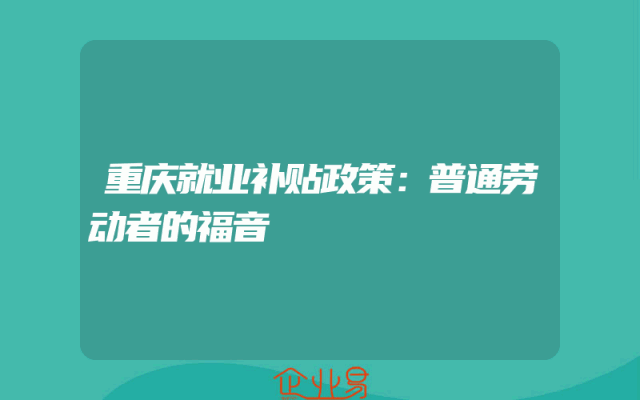 - 重庆就业补贴政策:普通劳动者的福音一、重庆就业补贴政策概述近年来,重庆市政府为了促进就业、改善民生,实施了一系列的就业补贴政策,这些政策对于普通劳动者来说,无疑是一场“福音”。重庆的就业补贴政策涵盖了多个领域,从创业扶持到在职技能提升,再到