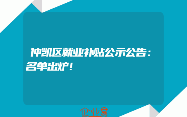 - 仲凯区就业补贴公示公告:名单出炉!