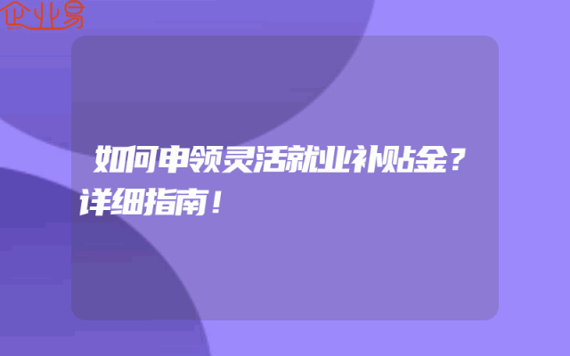 - 如何申领灵活就业补贴金?详细指南!