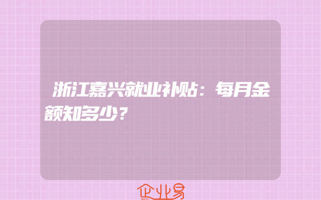 - 浙江嘉兴就业补贴:每月金额知多少?