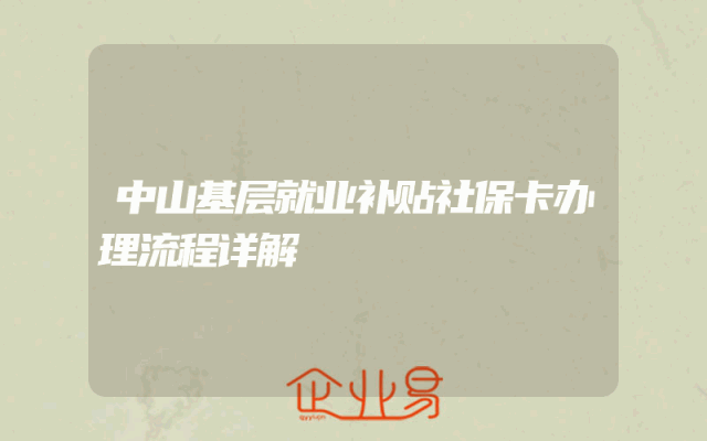 - 中山基层就业补贴社保卡办理流程详解