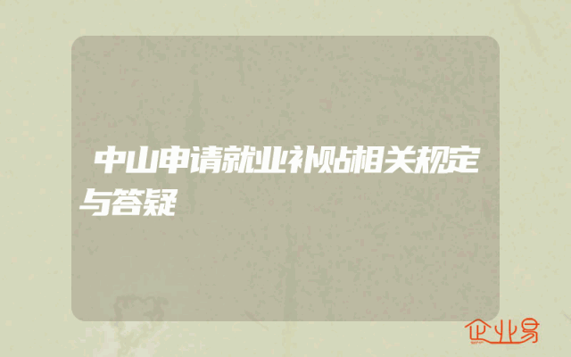 - 中山申请就业补贴相关规定与答疑