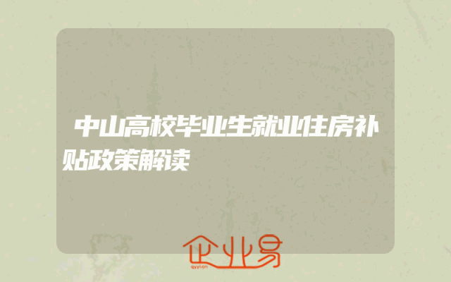 - 中山高校毕业生就业住房补贴政策解读