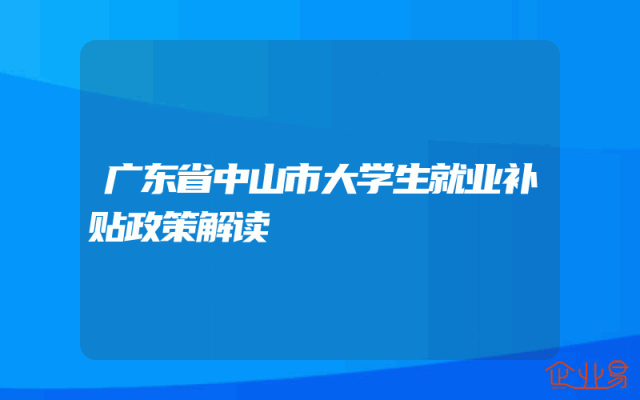 - 广东省中山市大学生就业补贴政策解读