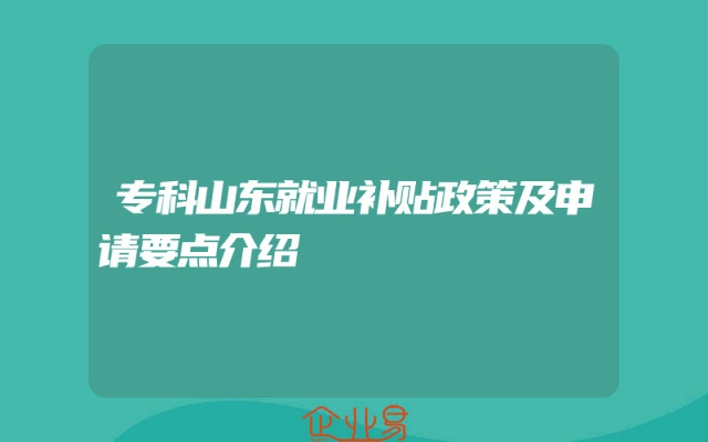 - 专科山东就业补贴政策及申请要点介绍